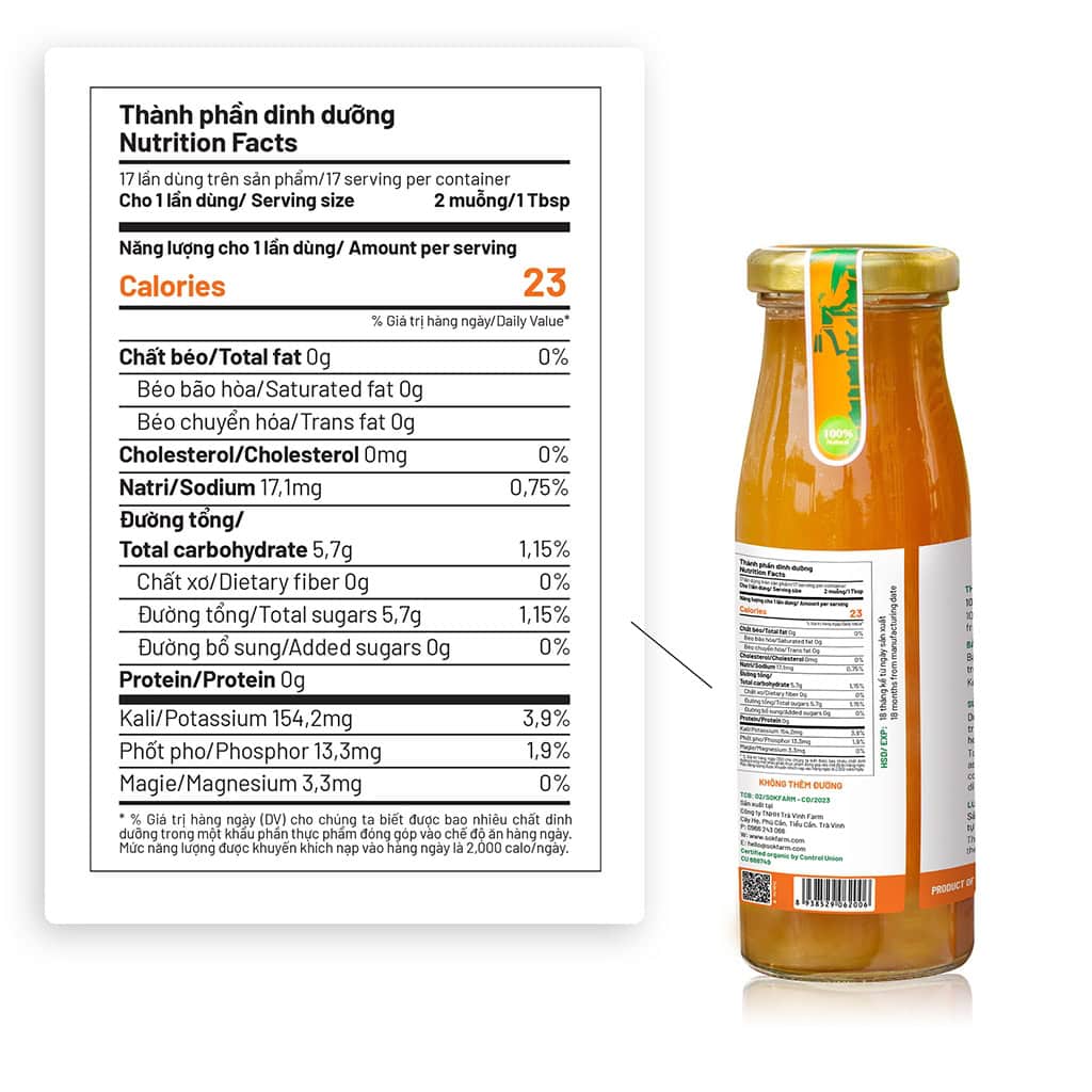 Tất cả sản phẩm đều là 100% tự nhiên, không thêm đường, không sử dụng chất bảo quản hoặc phụ gia thực phẩm.