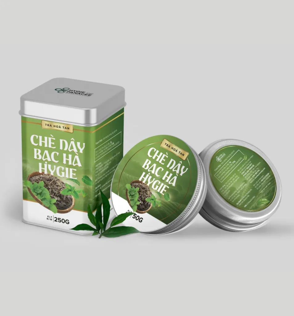 Trà Hoà Tan Chè Dây Bạc Hà Hygie được chế biến từ dịch chiết cô đặc của Chè Dây và Lá Bạc Hà. Trà hoà tan Chè Dây Bạc Hà có vị ngọt hậu hơi đắng và the mát. Ở dạng bột hoà tan tiện lợi, tan hoàn toàn trong nước ấm.