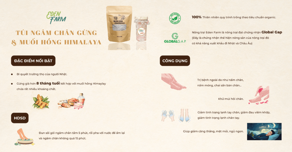 Thành phần: Gừng Sẻ 8 tháng tuổi, Muối hồng Himalaya
