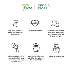 Công dụng: Giúp máu huyết lưu thông, da hồng hào tươi tắn hơn, cải thiện sức khỏe; Giảm đau mỏi xương khớp đau mỏi cổ vai gáy hay đau chân do đi giày cao gót; Giảm hôi chân, tẩy tế bào chết; Giảm tê bì chân tay,…