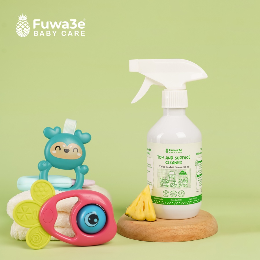 Hiểu được điều này, Fuwa3e đã sản xuất dòng nước rửa đồ chơi, lau bàn cho Fuwae3 dành riêng cho bé. Sản phẩm được sản xuất với nguyên liệu hoàn toàn tự nhiên với thành phần chính là Enzyme sinh học lên men từ vỏ dứa. Nước rửa đồ chơi Fuwa3e mang đến tính năng vượt trội từ Enzyme sinh học như khử khuẩn, làm sạch, khử mùi hôi…